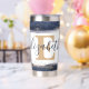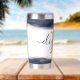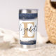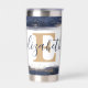 Elegant blue and gold brushstrokes personalised insulated tumbler