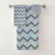 Elegant Blue and Gold Chevron Pattern Bath Towel Set