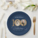 Elegant Blue and Gold Custom Photo 100th Birthday Paper Plate