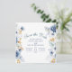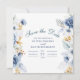 Announce your wedding in style with this elegant blue and gold floral Save the Date card. Featuring watercolor florals in shades of dusty blue, soft gold, and ivory, this classic design is paired with refined script and serif fonts for a romantic and timeless look.