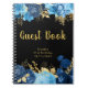 Elegant Blue and Gold Flowers Birthday Guest Book