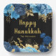 Elegant Blue and Gold Flowers Hanukkah Party Paper Plate