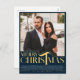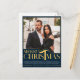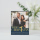 Elegant Blue and Gold Merry Christmas Family Photo Holiday Postcard