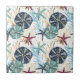 A sophisticated coastal-inspired pattern featuring blue seashells with gold accents, delicate starfish, and intricately detailed coral reefs in shades of blue and gold. Set against a clean white background, this ceramic tile blends nautical charm with elegant luxury—perfect for summer, beach-themed occasions, or ocean lovers seeking a refined aesthetic.
