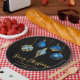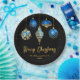 Celebrate the season with striking sophistication. This royal blue and gold Christmas party plate features five hanging ornaments - each uniquely styled with glittering stars, snowflakes, florals, and harlequin patterns. Set against a deep black background with golden sparkles, it brings a luxurious, modern twist to your holiday table. Perfect for festive gatherings, office parties, or upscale winter events.