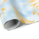 Immerse yourself in the sophisticated charm of this paisley-inspired wrapping paper, featuring graceful blue and gold leaves set against a serene gradient backdrop transitioning from white to blue. The intricate leaf motifs draw inspiration from traditional paisley patterns, offering a harmonious blend of classic elegance and contemporary style. This versatile pattern brings a touch of refined artistry to any space, making it an ideal choice for those seeking a timeless yet modern aesthetic.