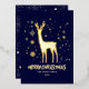 Elegant Blue and Gold Reindeer Merry Christmas Foil Holiday Card