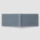 Custom-designed steel blue and silver foil wedding guestbook featuring modern elegant foliage wreath monogram with personalised couple's initials, name, and wedding date.