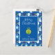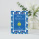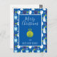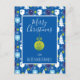 Elegant 💙blue and white🤍 Christmas🎄 pickleball card. Blue and white pickleball paddles, white Christmas trees with pickleball Christmas tree baubles, snowflakes on trendy dark blue background.