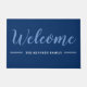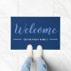 Welcome doormat in blue personalised with family name.