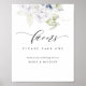 Elegant wedding favour sign with exquisite watercolor greenery and blue, white floral detail and graceful modern hand written calligraphy. 8" x 10" is only our default size, sign available in a variety of sizes. Easy to frame or alternatively glue/staple into inexpensive MDF. Part of our "Elegant Bliss" collection with a variety of coordinating invitations, event signs, and event products available.