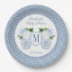 Elegant Blue And White Monogram Floral Baby Shower Paper Plate