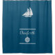 Elegant dark blue and white shower curtain with a nautical theme. Personalize your name in the template. Decorated with a sailboat gliding by, and a navigation icon, this bathmat will add casually elegant flair to your bathroom!