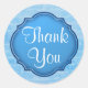 Blue and white thank you sticker for party favours, wedding favours and thank you notes. A deep bright navy blue centre features Thank You written in a large pretty font. The light blue background has a slightly vintage vibe with the shadow of white writing making up a pattern. The light and dark blue pattern is suitable for a blue and white wedding theme or party them. It will be an elegant addition to your thank you stationery. You can also customise the text if you wish.