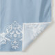 Add a personalised tapestry backdrop to your elegant blue and white coastal chic or classic regency era wedding with this photo banner. Stunning border is perfect for an old money or vintage minimalist dusty blue event venue in place of a traditional wedding arch. Use this wedding tapestry as a photo backdrop at the reception and personalise the wedding quote that reads our fairytale has just begun. Designed by Simple Desert Designs. Message us for customised colours in this design to match your exact colour palette.