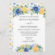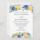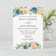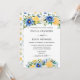 Celebrate your love in style with this elegant floral wedding invitation featuring a sophisticated arrangement of watercolor florals in rich blue, soft yellow and crisp white. The layout is clean and modern, with formal typography that balances classic serif fonts and graceful script accents. Perfect for barn weddings, rustic chic celebrations or any spring or summer event with a touch of floral elegance.