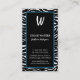 This elegant design with black background on zebra print with blue outline and white text features your initial/monogram at the top. Customise to add/remove fields or adjust alignment of monogram as needed. Dark background colour can be changed as desired.