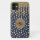 Beautiful rich gold and navy blue monogram cell phone case with faux rhinestones.