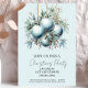 Invite guests to celebrate in seasonal style with this sophisticated Christmas party invitation, featuring delicate frosted blue baubles, silvery holly leaves, and soft winter berries. The timeless script and serene palette make it perfect for elegant holiday gatherings, winter soirées, or office parties. Easily customise with your event details and let the celebrations begin!