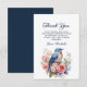Elegant Blue Bird Pink Flowers Birthday Thank You Card