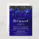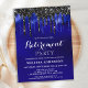 Elegant Blue Black Glitter Drips Retirement Party Announcement Postcard