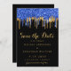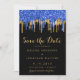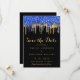 Elegant Blue Black Gold Glitter Drips Wedding Save The Date
