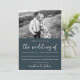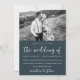 Beautiful illustrated blush floral photo wedding invitation. This elegant invitation is a chic way to let invited guests know of your upcoming marriage ceremony. This gorgeous invitation features lovely "the wedding of" calligraphy script on a dark blue background with the couple's photo, and a lovely blush pink and blue flower pattern back of the card.