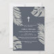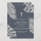 Elegant Blue Boho Leaves Cross Baptism Invitation