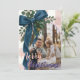 The design balances classic holiday elements with clean, modern typography, ensuring your personalized greeting feels both calm and stylish. The rich dusty blue of the bow creates a stunning focal point, while the minimalist arrangement allows your family photos to truly shine. This card is perfect for sending a polished and heartfelt message of "Merry Christmas" and "Happy New Year" to friends, family, and colleagues.