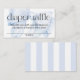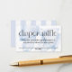 For a fun baby shower game, add this diaper raffle enclosure card with your baby shower invitations. Each guest brings a pack of diapers to the shower for a chance to win a prize. This feminine design has an elegant blue bow tilted to one side with a simple blue and white French awning stripe background on the reverse side.