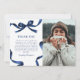 Elegant Blue Bow Graduation Photo Thank You Card