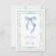 Chic and whimsical bridal shower thank you card featuring a vintage grandmillenial-inspired green scallop and blue floral watercolor frame, an elegant blue bow, and "with love + thanks" showcased in a blue calligraphy script. On the back, personalize your thank you message in simple modern lettering and add your name in a signature-like script, or leave blank for handwritten notes.