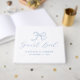 Celebrate your wedding day with this elegant soft blue wedding guest book featuring a hand-drawn bow and “Guest Book” displayed in a graceful script. The light blue accents add a romantic touch—perfect for spring weddings, garden ceremonies, or celebrations with a pastel or blue colour palette. Personalise the front cover with your names and wedding date, and add custom text to the spine for a meaningful, personalised detail. A timeless keepsake for capturing heartfelt messages from your guests.