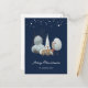 Cute blue Merry Christmas postcard featuring a watercolor winter scene with a buck and a doe in a snowy forest and shining stars above them. Easily personalise this blue holiday postcard with your family name, return address and additional text as desired.