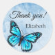 A butterfly in shades of blue in the blue marble background. All of text is personalised. This is a digital illustration.