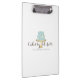 Coordinates with the Elegant Blue Cake with Florals Cake Decorating Business Card Template by 1201AM. An elegant tiered blue cake decorated with white flowers sits atop a faux gold cake stand for a beautiful aesthetic on this personalised clipboard design. Update the calligraphic text with your name or business name for an instant logo. Art and design © 1201AM Design Studio
