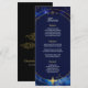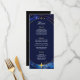 Add a touch of cosmic elegance to your reception with this Elegant Blue Celestial Wedding Menu. Designed with a rich dark blue space inspired background, the menu evokes the beauty of a starry night sky. A refined, delicate frame surrounds the menu content, creating a sophisticated balance between mystique and formality. Perfect for celestial, stargazer, or evening themed weddings, this menu card beautifully showcases your curated meal while elevating your table setting with a magical, otherworldly charm.