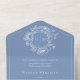 ALSO AVAILABLE WITH DINNER CHOICES OR WITH A QR CODE. Elevate your special day with our elegant, vintage Baroque-style wedding invitation, a masterpiece of timeless elegance. Featuring a delicate white chinoiserie crest with delicate line art ribbons, flowers, birds and filigree on a French dusty blue background, this design exudes classic charm and sophistication. Its simplicity highlights its refined details, creating a design as graceful as your love story. Perfect for those who cherish tradition and elegance. Created by Simply Farmhouse Press.