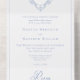 ALSO AVAILABLE WITH OR WITHOUT DINNER CHOICES. Elevate your special day with our elegant, vintage Baroque-style wedding invitation, a masterpiece of timeless elegance. Featuring a delicate French dusty blue chinoiserie crest with delicate line art ribbons and filigree on a pristine white background, this design exudes classic charm and sophistication. Its simplicity highlights its refined details, creating a design as graceful as your love story. Perfect for those who cherish tradition and elegance. Created by Simply Farmhouse Press.