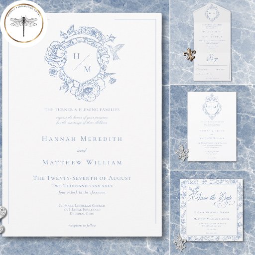 Elegant Blue Chinoiserie Bird & Crest WeddingDesigned by Kathe Santillo
