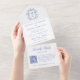 Elegant Blue Crest Chinoiserie Monogram Wedding All In One Invitation