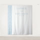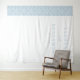 This elegant wedding backdrop features a minimalist design with a clean, sophisticated aesthetic. The left side showcases a vertical band of light blue damask pattern, adding subtle texture against the crisp white background. Centred on the right are customisable names and date in a classic serif font, rendered in soft grey-blue for a harmonious look. The restrained colour palette of whites and blues creates a serene and timeless feel, perfect for formal celebrations. Ideal for weddings, this design blends traditional typography with contemporary minimalism to convey elegance and calmness.