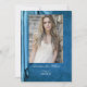 An elegant blue drapery provides the background for this graduation announcement card. The photo and all text are easily changed by using the template. If other changes are desired (different type fonts, colour, size or placement) select "Personalise this design" then select "Edit using Design Too." Additional shapes and sizes of cards are available. See Options. However, to make the design elements fit correctly on a different size, you may need to use the Design Tool. Comes complete with envelopes.