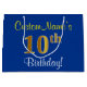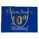 Elegant, Blue, Faux Gold 10th Birthday + Name Large Gift Bag