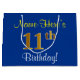 Elegant, Blue, Faux Gold 11th Birthday + Name Large Gift Bag