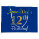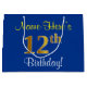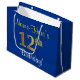 Elegant, Blue, Faux Gold 12th Birthday + Name Large Gift Bag