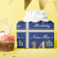 This simple and elegant wrapping paper design features a personalised message like "Name-Here’s 14th Birthday" (with the "14th" having a faux/imitation gold-like colouring look) within a blue-coloured square area featuring a simple border outline. The name is in an elegant white-coloured script-like text, and can be personalised. Wrapping paper like this could perhaps be used when wrapping birthday gifts for somebody who is celebrating their fourteenth birthday. [~Z0000221]