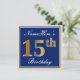 Elegant, Blue, Faux Gold 15th Birthday + Name Invitation