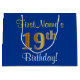 Elegant, Blue, Faux Gold 19th Birthday + Name Large Gift Bag