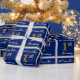 This simple and elegant wrapping paper design features a personalised message like "ANameHere’s 1st Birthday" (with the "1st" having a faux/imitation gold-like colouring look) within a blue-coloured square area featuring a simple border outline. The name is in an elegant white-coloured script-like text, and can be customised. Wrapping paper like this could perhaps be used when wrapping birthday gifts for somebody who is celebrating their first birthday. [~Z0000221]